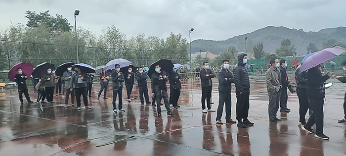 一、统筹领导,高效组织。8月26日晚,王维民总经理接到“午夜12时封城”(静态管控起始)信息,紧急部署公司疫情防控工作领导小组,启动疫情防控应急措施。20点30分,防控工作领导小组成员和各单位主要领导全部到达公司会议室。22点前,紧急召回火连寨以外居住的职工152人,实现了选矿生产两班倒运行。防控小组成员各司其职、生产单位各负其责,为确保公司疫情防控和生产经营工作有序进行奠定基础。